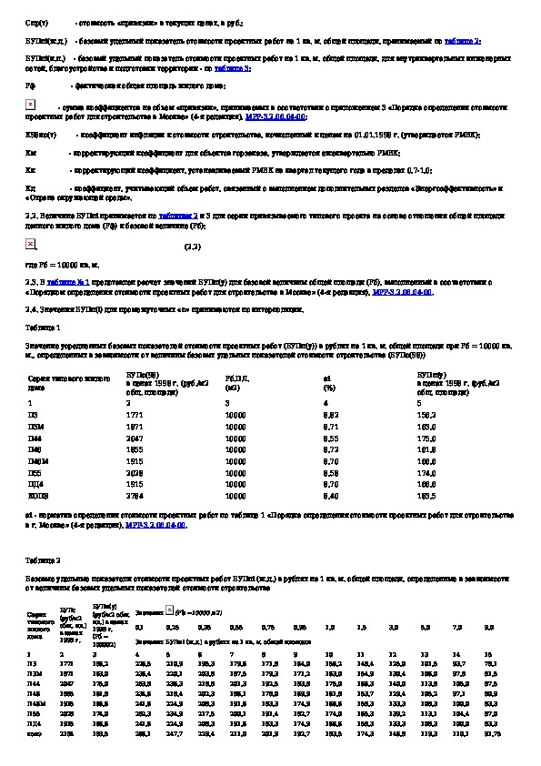 МРР 3.2.22.02-00: Порядок определения стоимости "привязки" типовых проектов жилых домов в зависимости от стоимости строительства 1 кв. м общей площа
