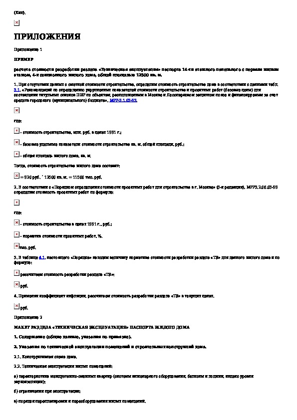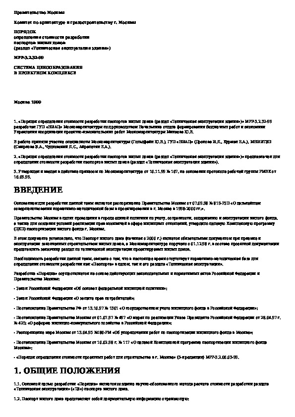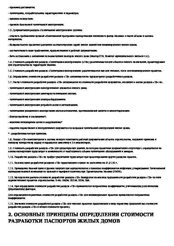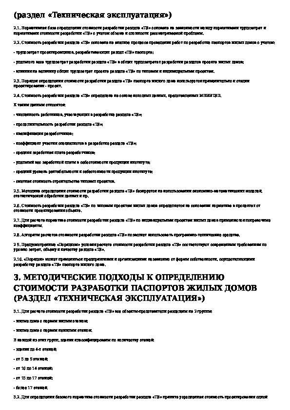 Порядок определения стоимости разработки паспортов жилых домов (раздел "Техническая эксплуатация здания")