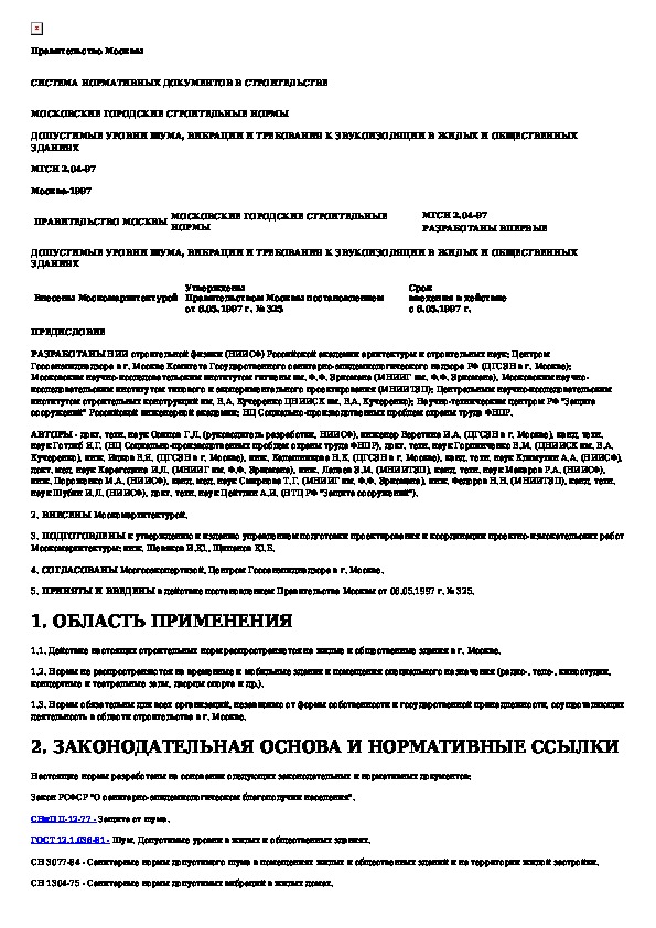 Наша цель состоит в том, чтобы предоставить вам быстрый доступ к содержанию документа Допустимые уровни шума, вибрации и требования к звукоизоляции в жилых и общественных зданиях. г. Москва.