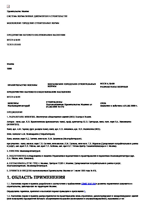 ТСН 31-319-99: Предприятия бытового обслуживания населения. г. Москва