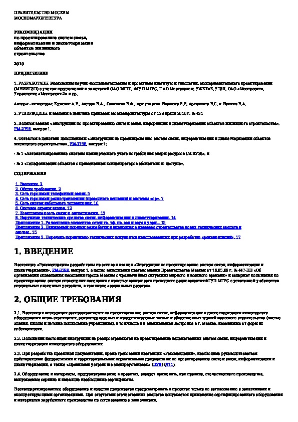 Наша цель состоит в том, чтобы предоставить вам быстрый доступ к содержанию документа Рекомендации по проектированию систем связи, информатизации и диспетчеризации объектов жилищного строительства.