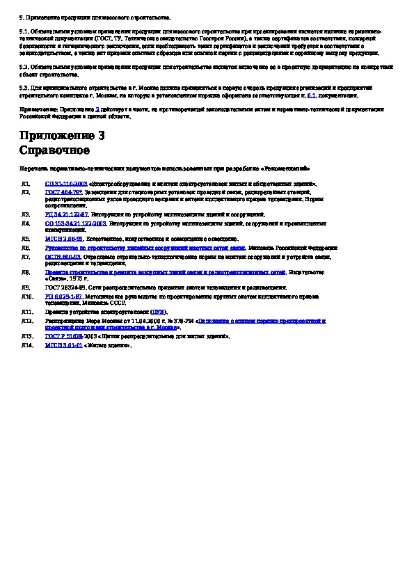 Рекомендации по проектированию систем связи, информатизации и диспетчеризации объектов жилищного строительства