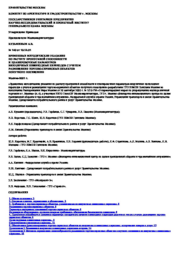Наша цель состоит в том, чтобы предоставить вам быстрый доступ к содержанию документа Временные методические указания по расчету пропускной способности и планировочных параметров внеуличных пешеходных переходов с .