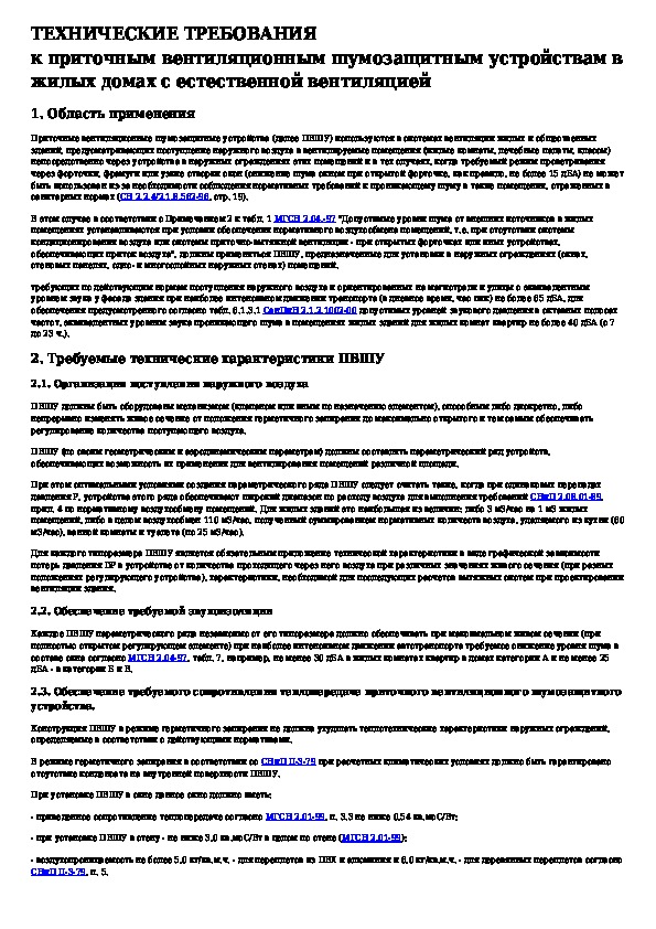 • Просмотр в полноэкранном режиме - легко просмотреть документ Технические требования к приточным вентиляционным шумозащитным устройствам в жилых домах с естественной вентиляцией (без загрузки его на свой компьютер).