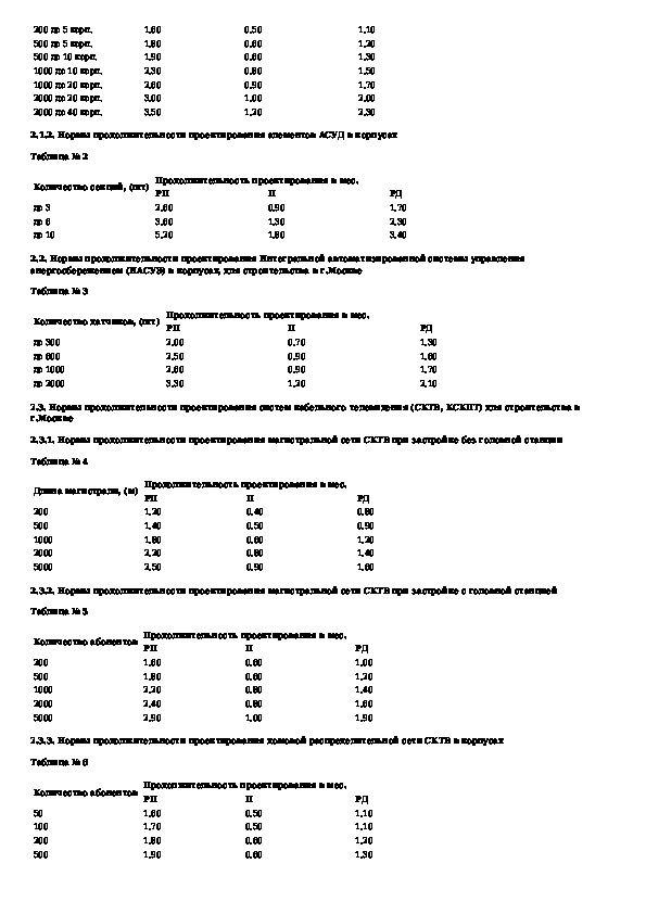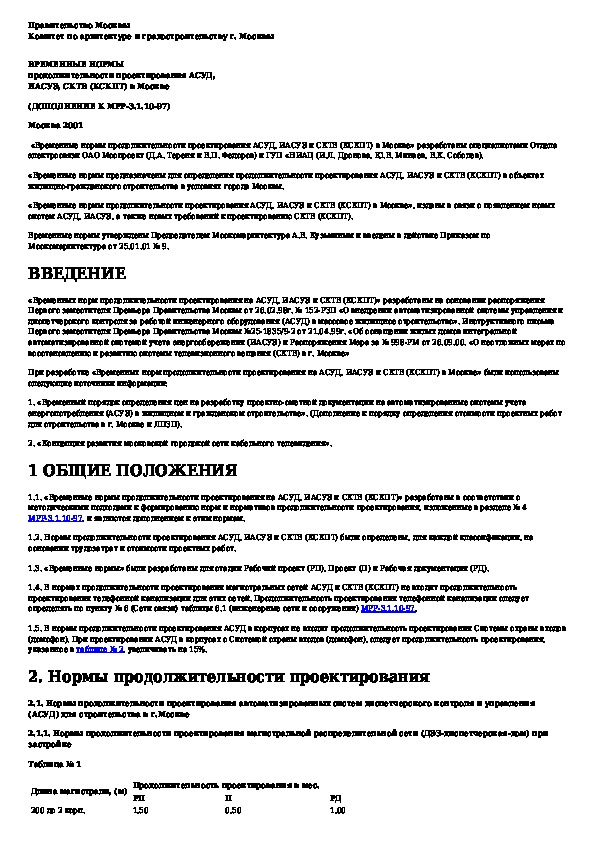 Временные нормы продолжительности проектирования АСУД, ИАСУЭ, СКТВ (КСКПТ) в Москве (дополнение к МРР 3.1.10.97)