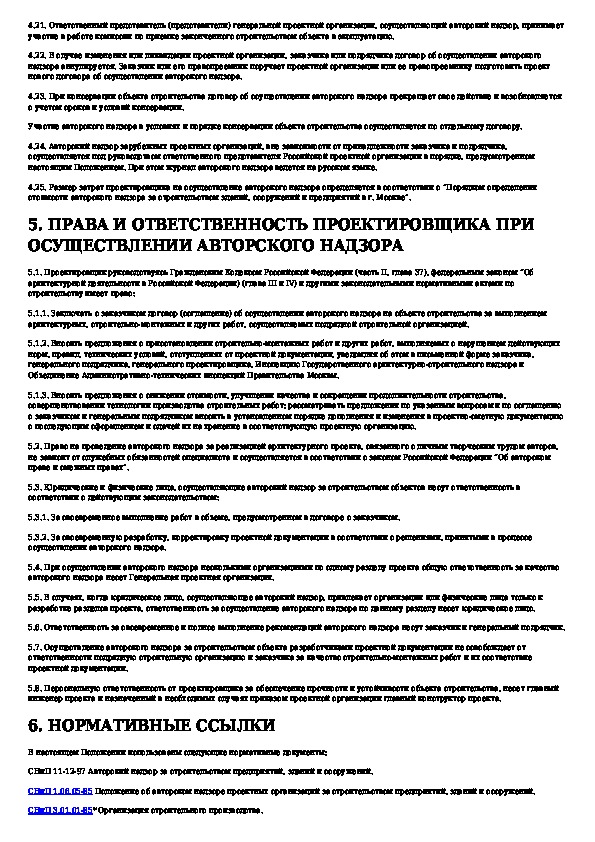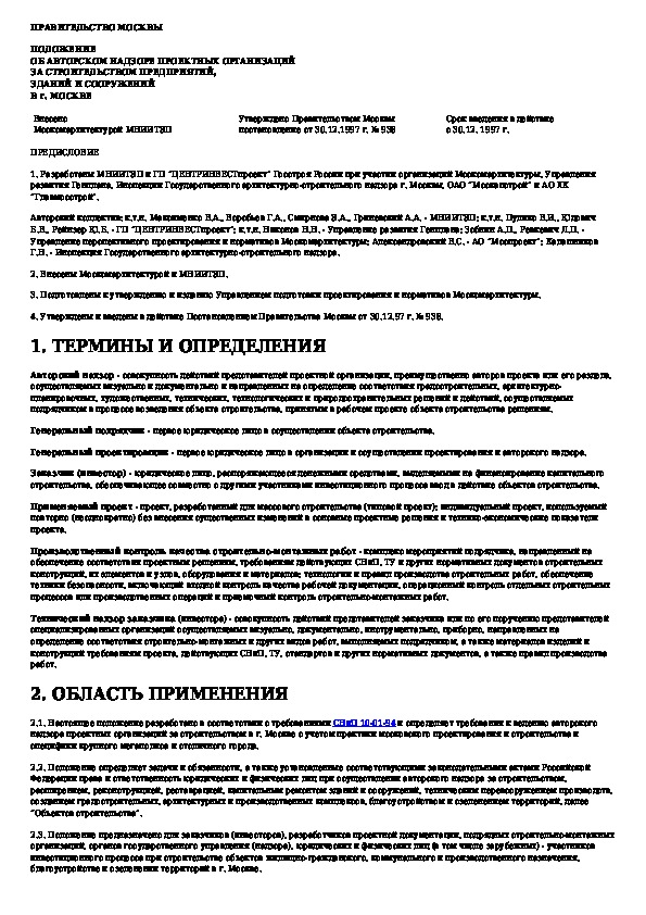 Положение об авторском надзоре проектных организаций за строительством предприятий, зданий и сооружений в г. Москве
