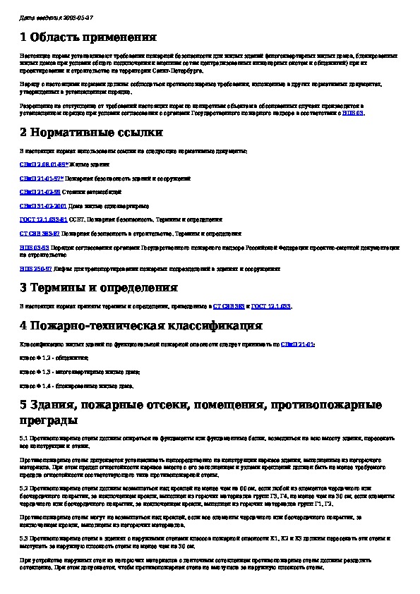 Наша цель состоит в том, чтобы предоставить вам быстрый доступ к содержанию документа Жилые здания. Требования пожарной безопасности. г. Санкт-Петербург.