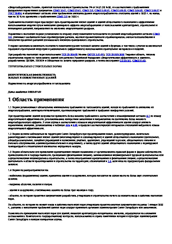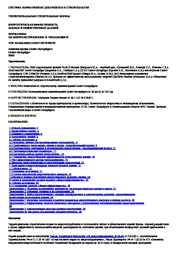 ТСН 23-340-2003: Энергетическая эффективность жилых и общественных зданий. Нормативы по энергопотреблению и теплозащите. г. Санкт-Петербург
