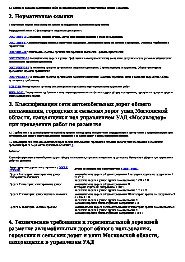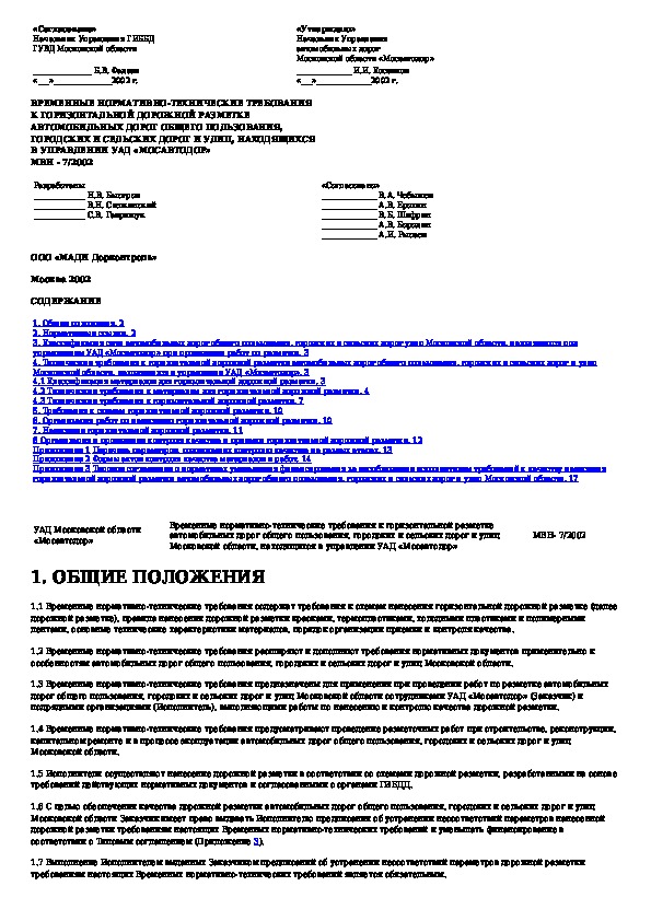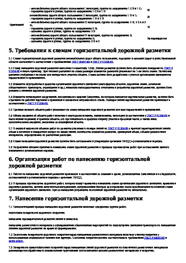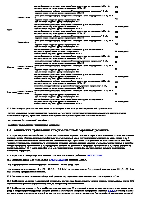 Временные нормативно-технические требования к горизонтальной дорожной разметке автомобильных дорог общего пользования, городск