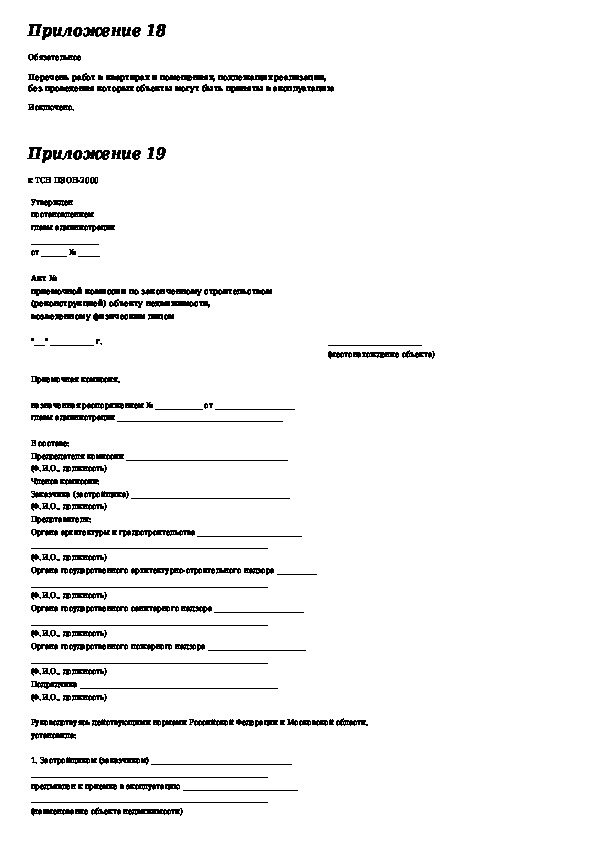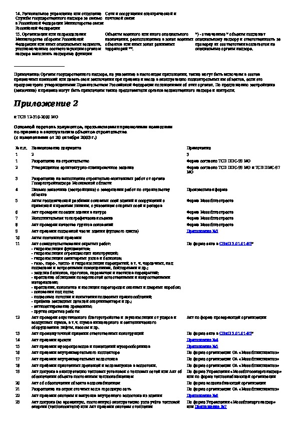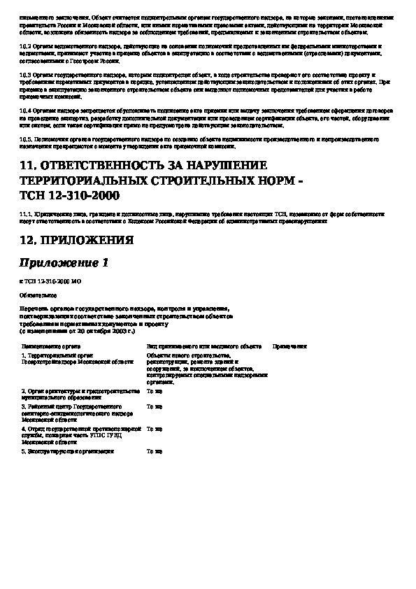 ТСН 12-310-2000: Приемка в эксплуатацию законченных строительством объектов недвижимости на территории Московской области