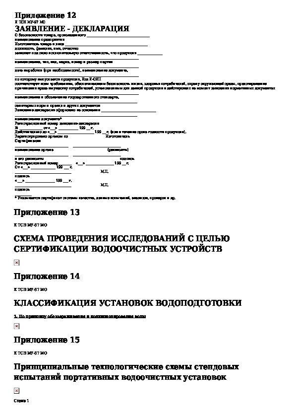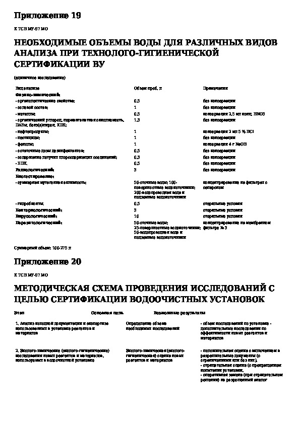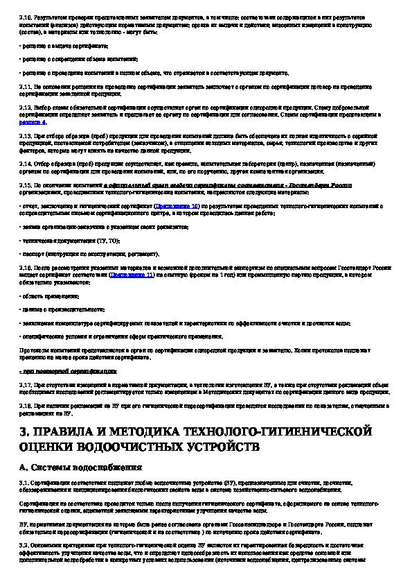 Методические указания (регламент) по сертификации водоочистного оборудования индивидуального (бытового) и коллективного пользов