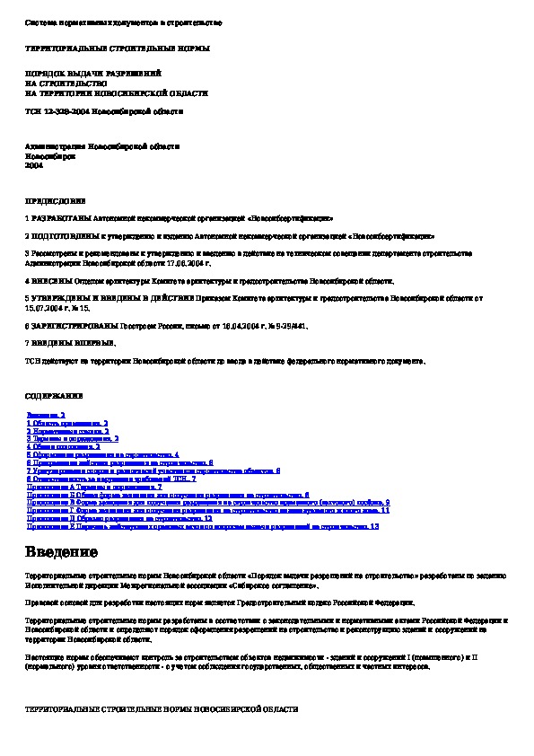 ТСН 12-328-2004: Порядок выдачи разрешений на строительство на территории Новосибирской области