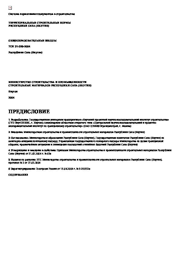 ТСН 31-328-2004: Общеобразовательные школы. Республика Саха (Якутия)