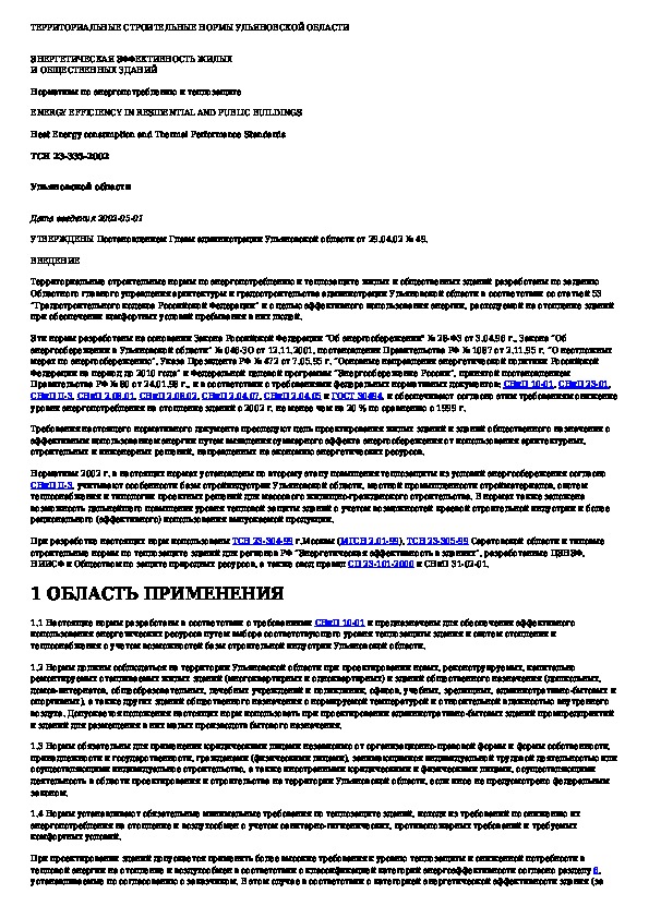 Энергетическая эффективность жилых и общественных зданий. Нормативы по энергопотреблению и теплозащите. Ульяновская область