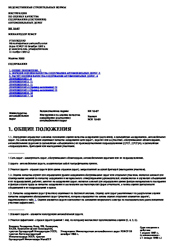 ВН 10-87: Инструкция по оценке качества содержания (состояния) автомобильных дорог