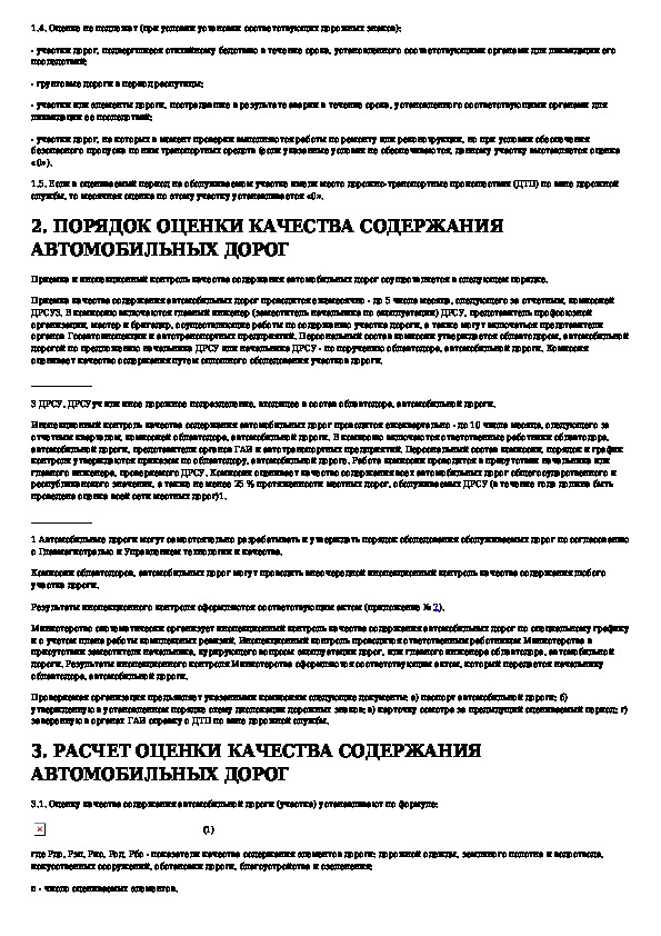 Инструкция по оценке качества содержания (состояния) автомобильных дорог