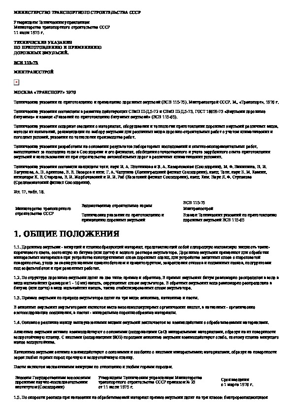 ВСН 115-75: Технические указания по приготовлению и применению дорожных эмульсий