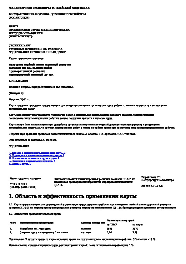 Наша цель состоит в том, чтобы предоставить вам быстрый доступ к содержанию документа Нанесение двойной линии дорожной разметки составом НП-501 по имеющейся предварительной разметке маркировочной машиной ДЭ-18А.