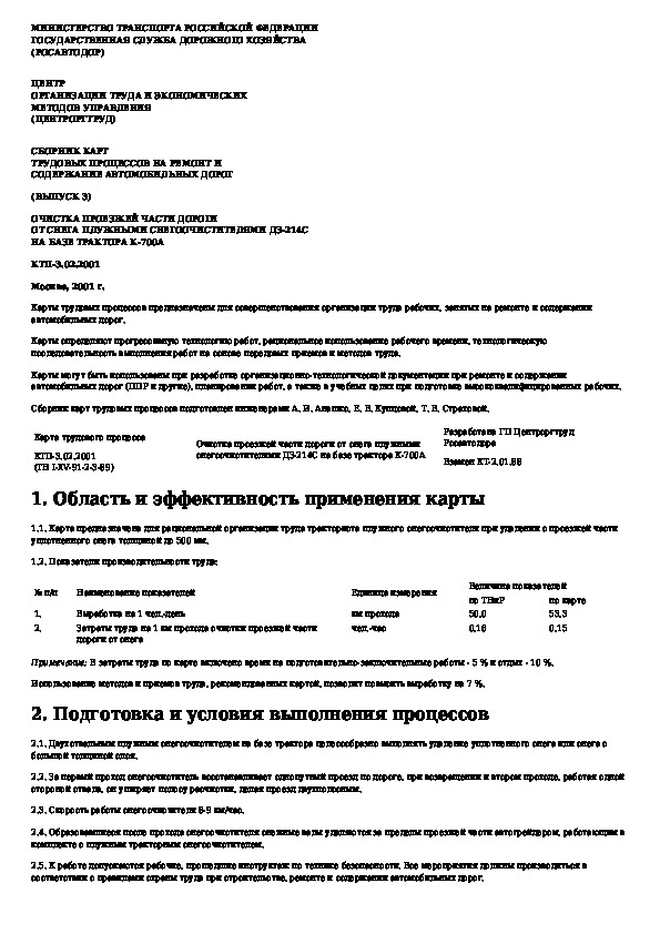 КТП 3.02.2001: Очистка проезжей части дороги от снега плужными снегоочистителями ДЗ-214С на базе трактора К-700А