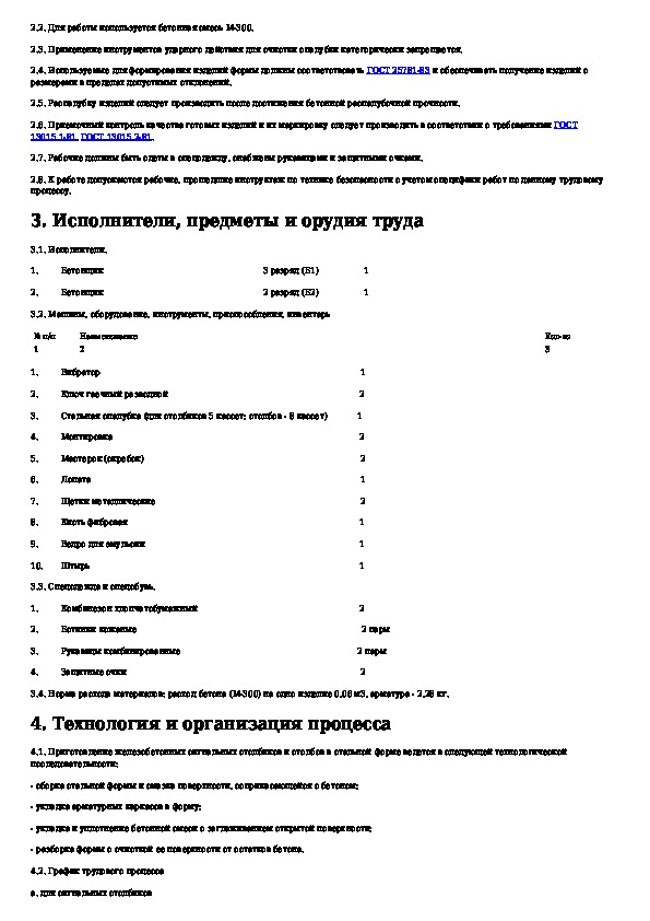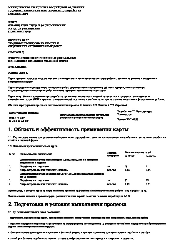 КТП 3.06.2001: Изготовление железобетонных сигнальных столбиков и столбов в стальной форме