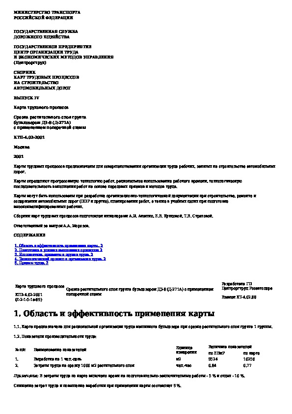 КТП 4.02.2001: Срезка растительного слоя грунта бульдозером ДЗ-8 (Д-271 А) с применением поперечной схемы