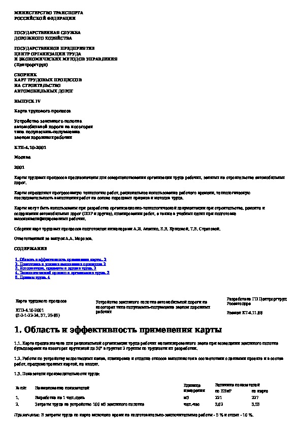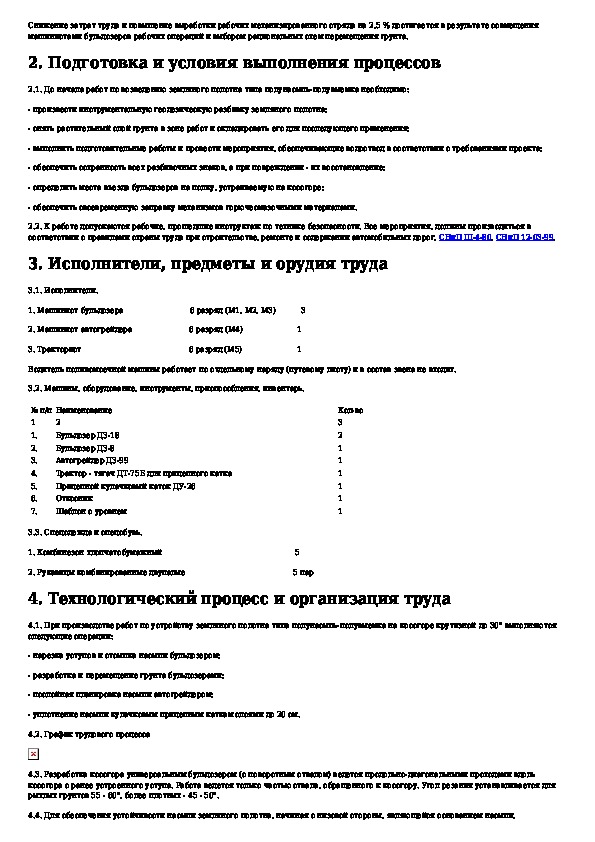 КТП 4.10.2001: Устройство земляного полотна автомобильной дороги на косогорах типа полунасыпь-полувыемка звеном дорожных рабочих