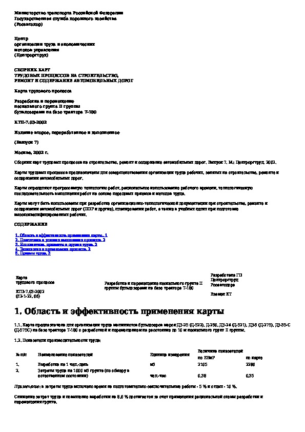 Наша цель состоит в том, чтобы предоставить вам быстрый доступ к содержанию документа Разработка и перемещение нескального грунта II группы бульдозерами на базе трактора Т-180.