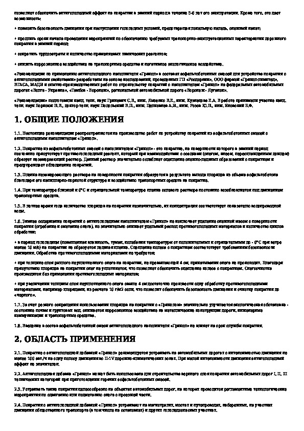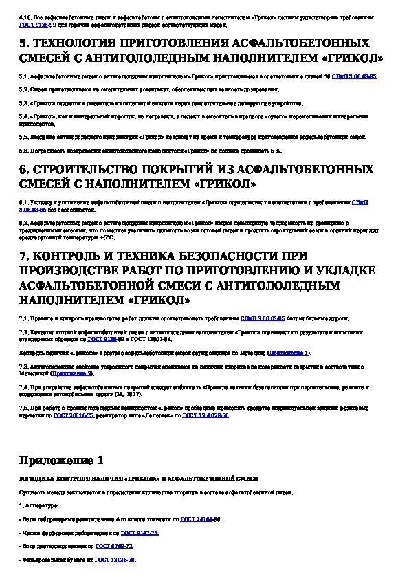Методические рекомендации по применению наполнителя "ГРИКОЛ" в составах асфальтобетонных смесей для устройства покрытия с антиго