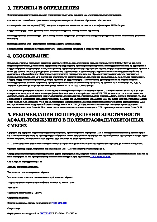 Наша цель состоит в том, чтобы предоставить вам быстрый доступ к содержанию документа Метод определения эластичности асфальтовяжущего в полимерасфальтобетонных смесях (для опытного применения).