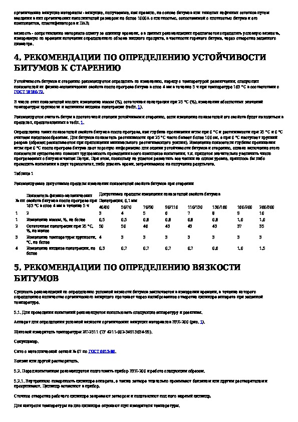 Рекомендации по определению устойчивости к старению и вязкости битумов