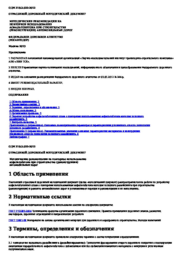 Наша цель состоит в том, чтобы предоставить вам быстрый доступ к содержанию документа Методические рекомендации на повторное использование асфальтобетона при строительстве (реконструкции) автомобильных дорог.