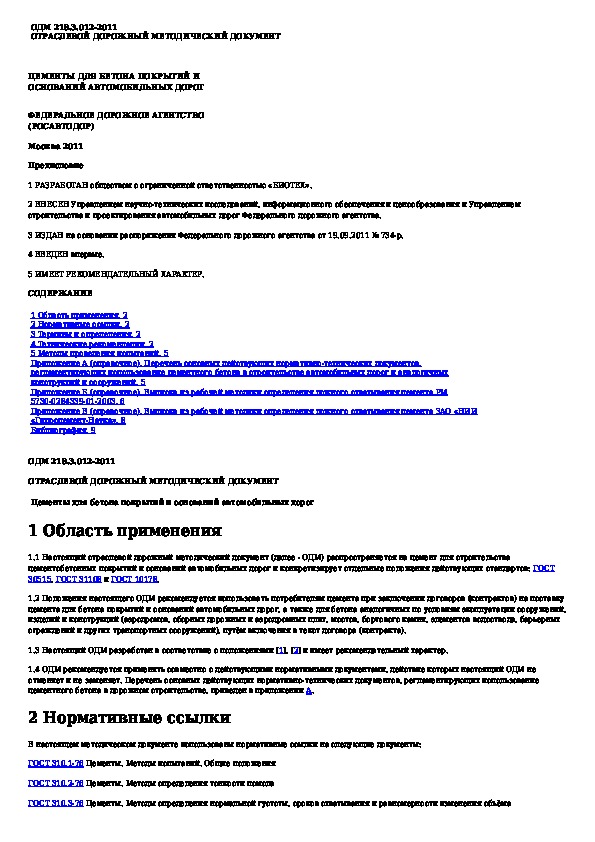 ОДМ 218.3.012-2011: Цементы для бетона покрытий и оснований автомобильных дорог