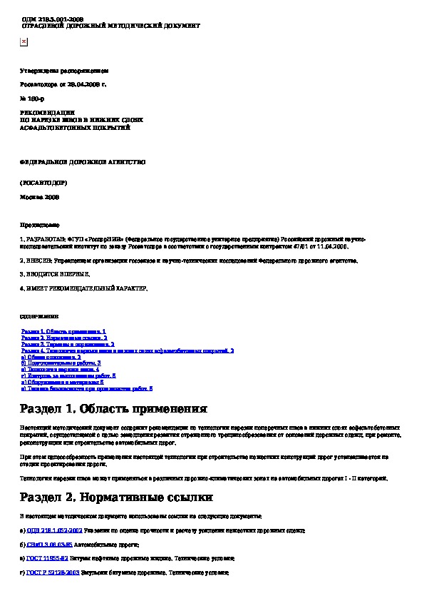 Наша цель состоит в том, чтобы предоставить вам быстрый доступ к содержанию документа Рекомендации по нарезке швов в нижних слоях асфальтобетонных покрытий.