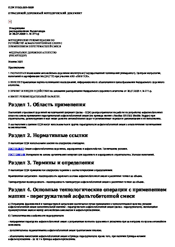 Наша цель состоит в том, чтобы предоставить вам быстрый доступ к содержанию документа Методические рекомендации по устройству асфальтобетонных слоев с применением перегружателей смеси.