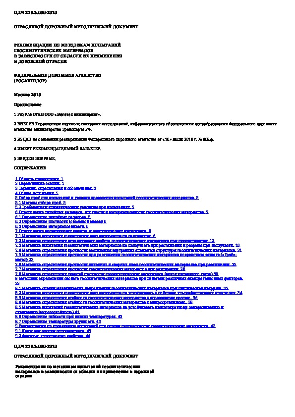 Наша цель состоит в том, чтобы предоставить вам быстрый доступ к содержанию документа Рекомендации по методикам испытаний геосинтетических материалов в зависимости от области их применения в дорожной отрасли.