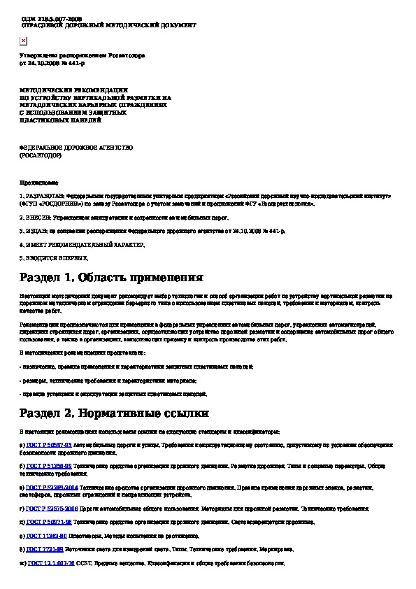 Наша цель состоит в том, чтобы предоставить вам быстрый доступ к содержанию документа Методические рекомендации по устройству вертикальной разметки на металлических барьерных ограждениях с использованием защитных.