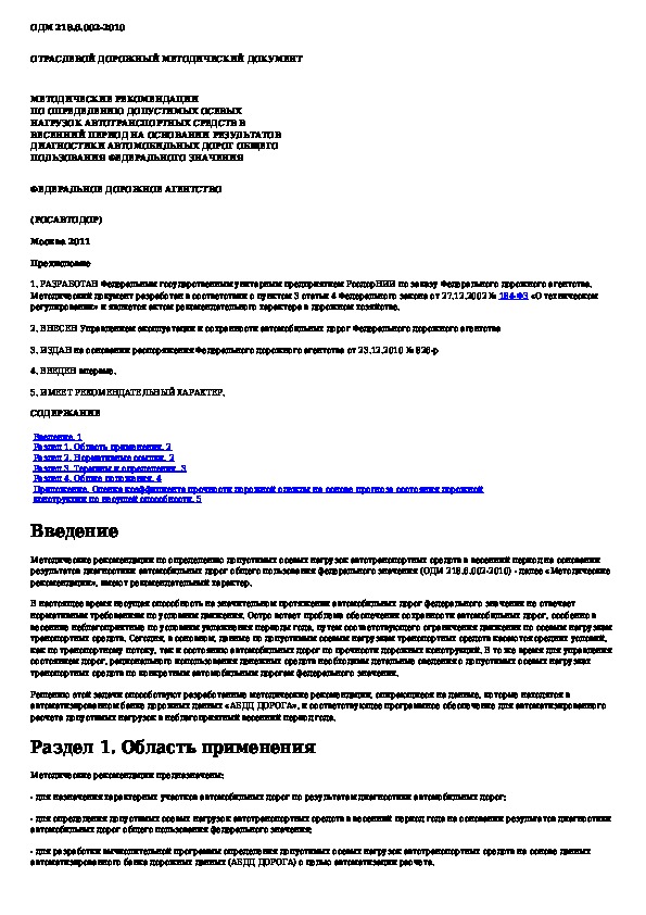 Наша цель состоит в том, чтобы предоставить вам быстрый доступ к содержанию документа Методические рекомендации по определению допустимых осевых нагрузок автотранспортных средств в весенний период на основании рез.