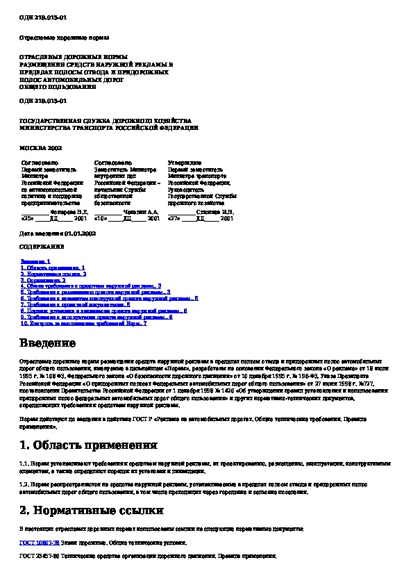 Наша цель состоит в том, чтобы предоставить вам быстрый доступ к содержанию документа Отраслевые дорожные нормы размещения средств наружной рекламы в пределах полосы отвода и придорожных полос автомобильных дорог о.