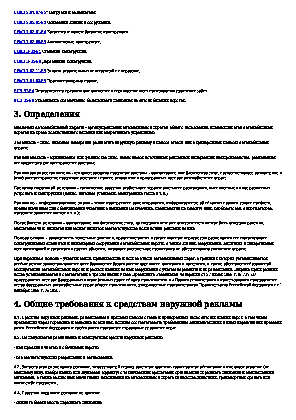 Отраслевые дорожные нормы размещения средств наружной рекламы в пределах полосы отвода и придорожных полос автомобильных дорог о