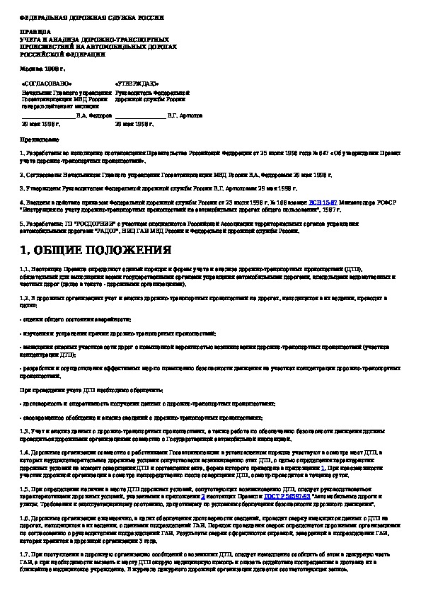 Правила учета и анализа дорожно-транспортных происшествий на автомобильных дорогах Российской Федерации