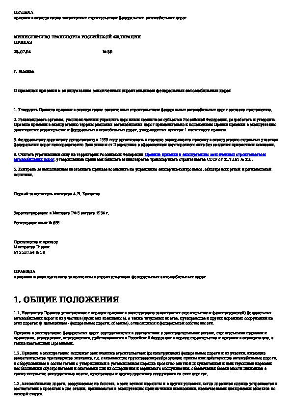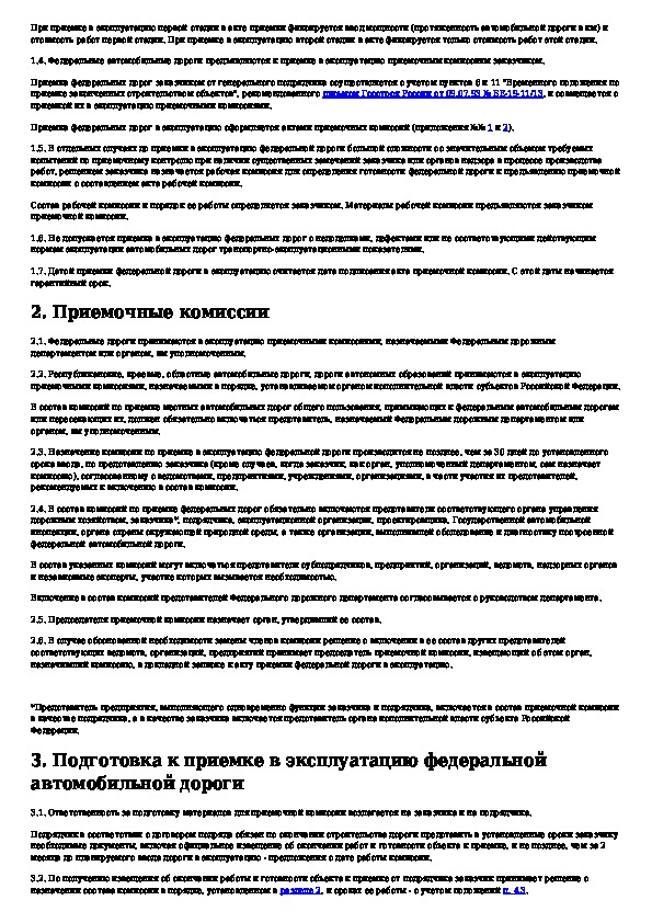 Правила приемки в эксплуатацию законченных строительством федеральных автомобильных дорог