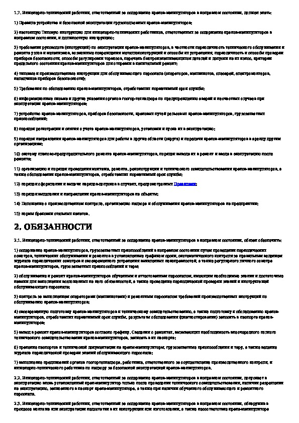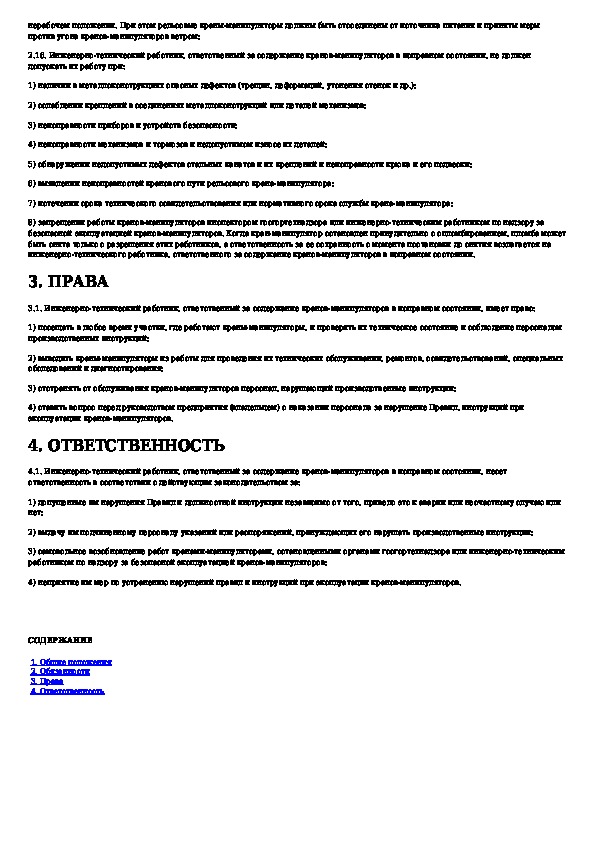 Наша цель состоит в том, чтобы предоставить вам быстрый доступ к содержанию документа Типовая инструкция для инженерно-технических работников, ответственных за содержание кранов-манипуляторов в исправном состоянии.
