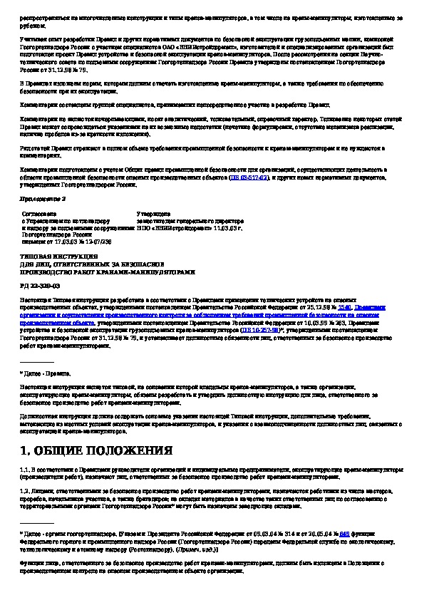 РД 22-329-03: Типовая инструкция для лиц, ответственных за безопасное производство работ кранами-манипуляторами