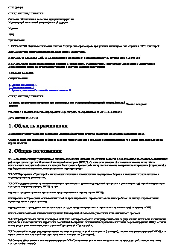 Наша цель состоит в том, чтобы предоставить вам быстрый доступ к содержанию документа Система обеспечения качества при реконструкции Московской кольцевой автомобильной дороги.