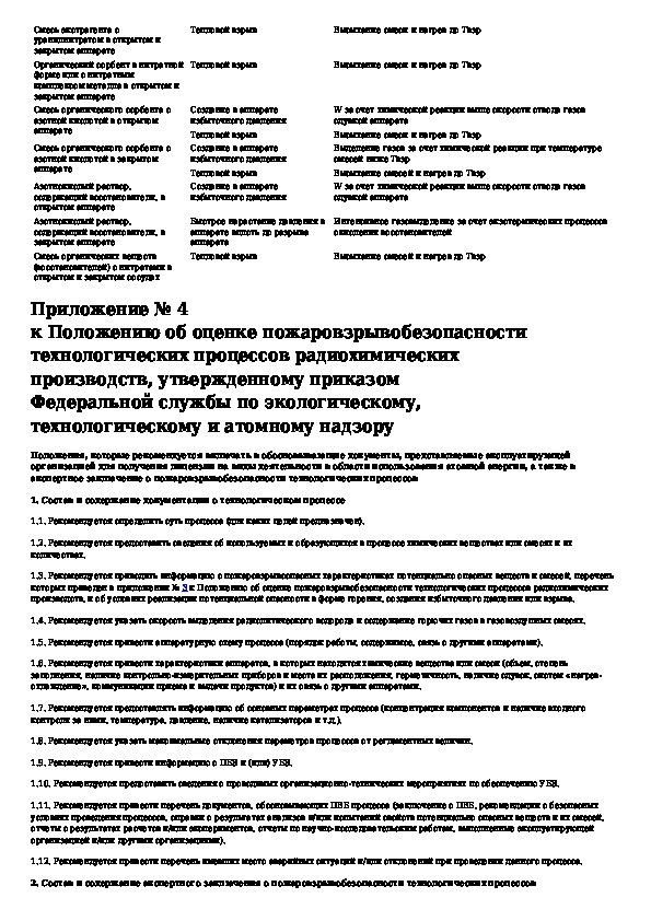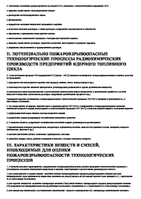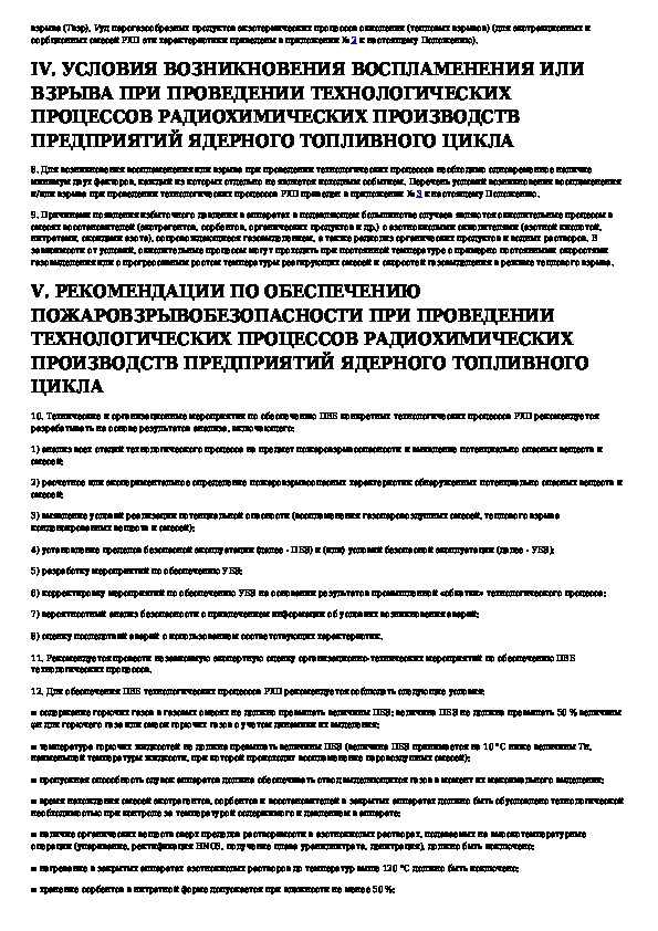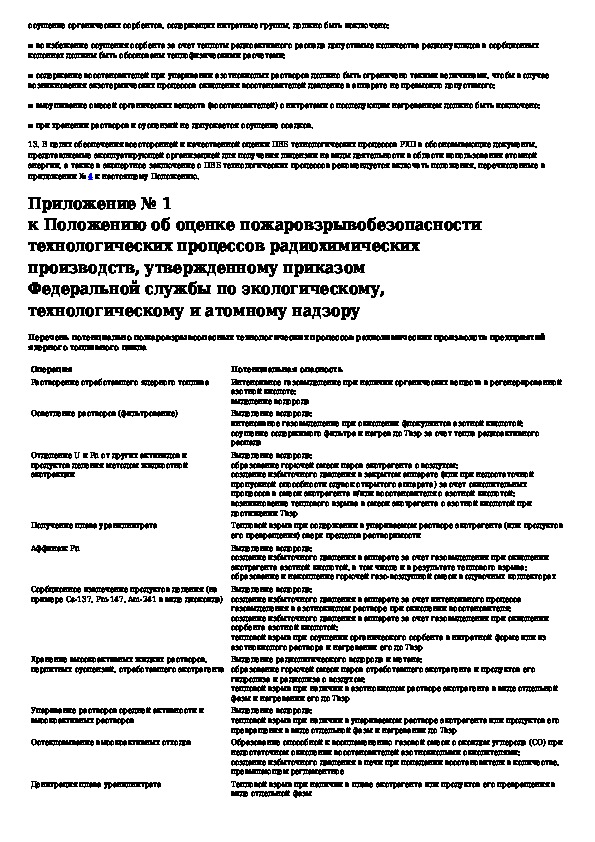 Положение об оценке пожаровзрывобезопасности технологических процессов радиохимических производств