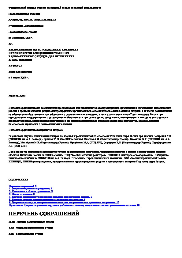Наша цель состоит в том, чтобы предоставить вам быстрый доступ к содержанию документа Рекомендации по установлению критериев приемлемости кондиционированных радиоактивных отходов для их хранения и захоронения.
