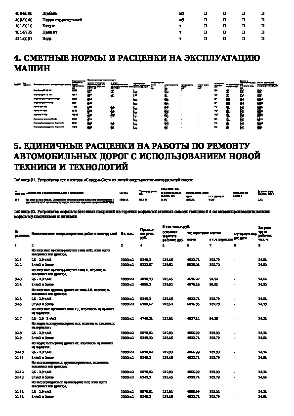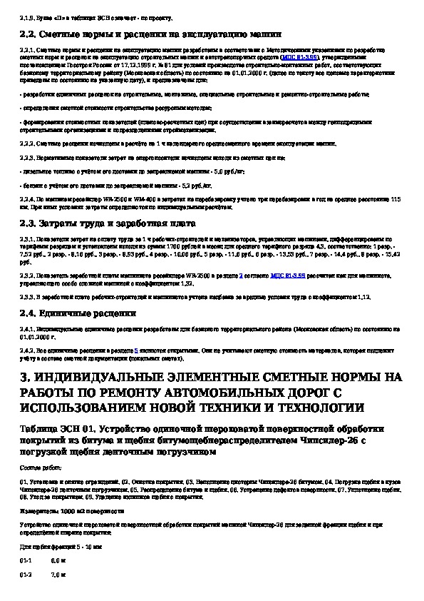 Индивидуальные элементные сметные нормы и расценки на работы по ремонту автомобильных дорог с использованием новой техники и тех