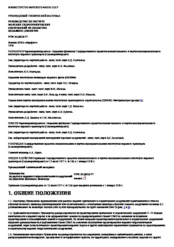 РТМ 31.3013-77: Руководство по расчету морских гидротехнических сооружений из оболочек большого диаметра