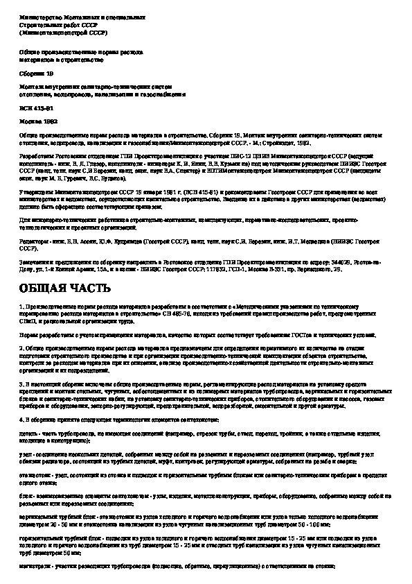 Наша цель состоит в том, чтобы предоставить вам быстрый доступ к содержанию документа Общие производственные нормы расхода материалов в строительстве. Сборник 19. Монтаж внутренних санитарно-технических систем отопл.