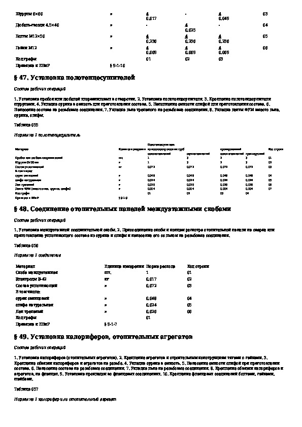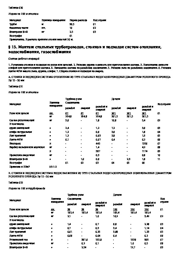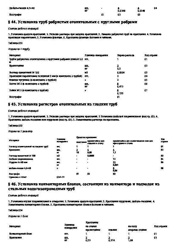 Общие производственные нормы расхода материалов в строительстве. Сборник 19. Монтаж внутренних санитарно-технических систем отопл